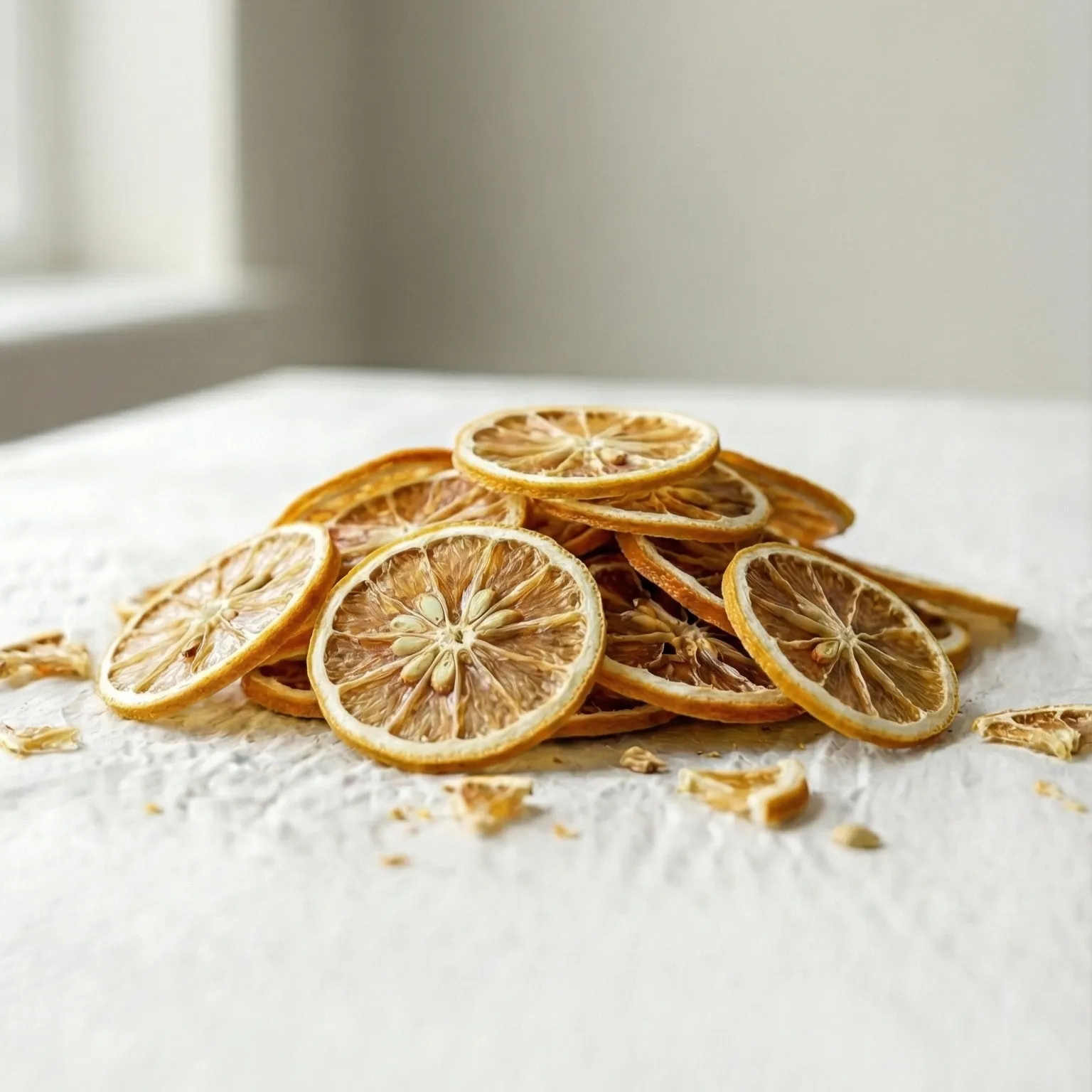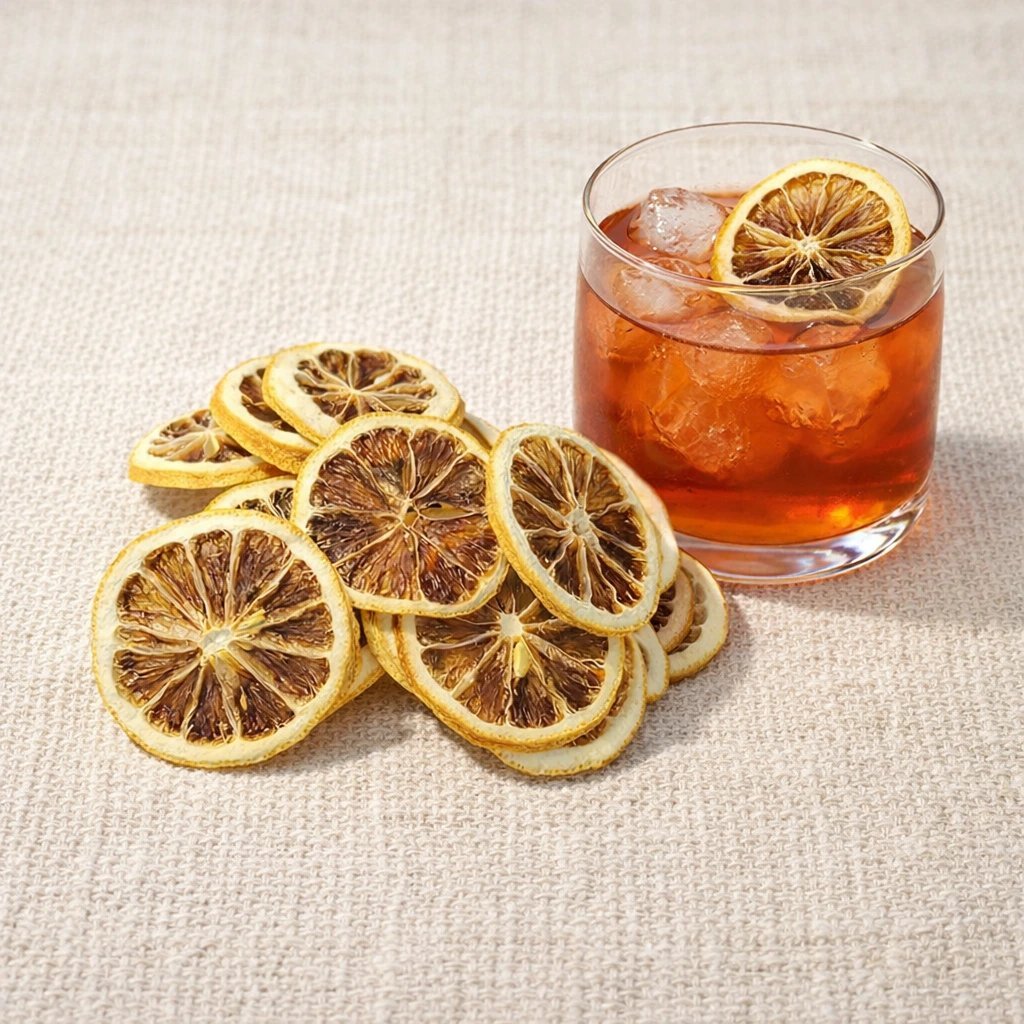 100% natuurlijke, knapperige citroenschijven zonder toevoegingen. Friszuur en vol aroma; ideaal voor cocktails, thee, desserts en decoratie.